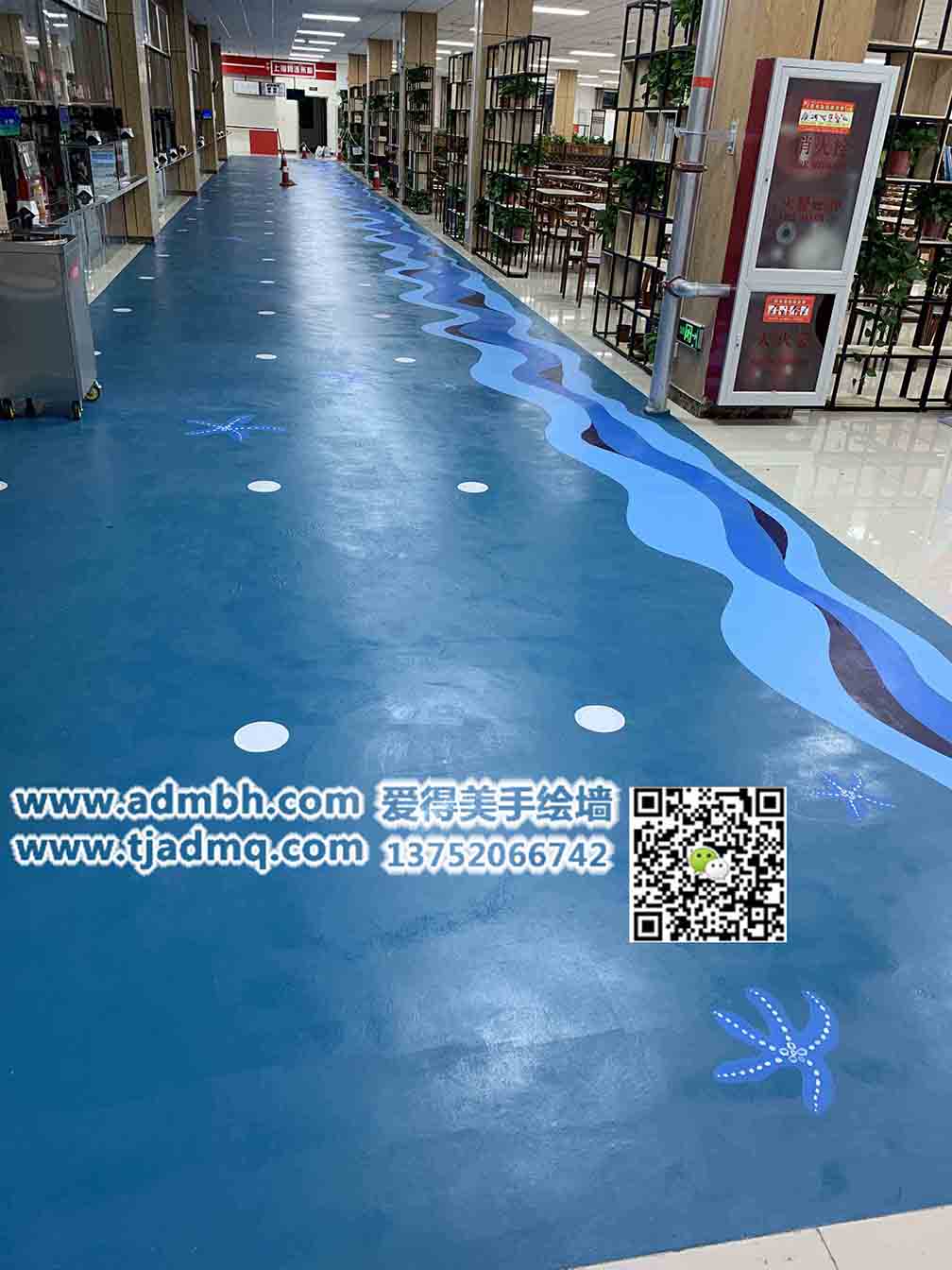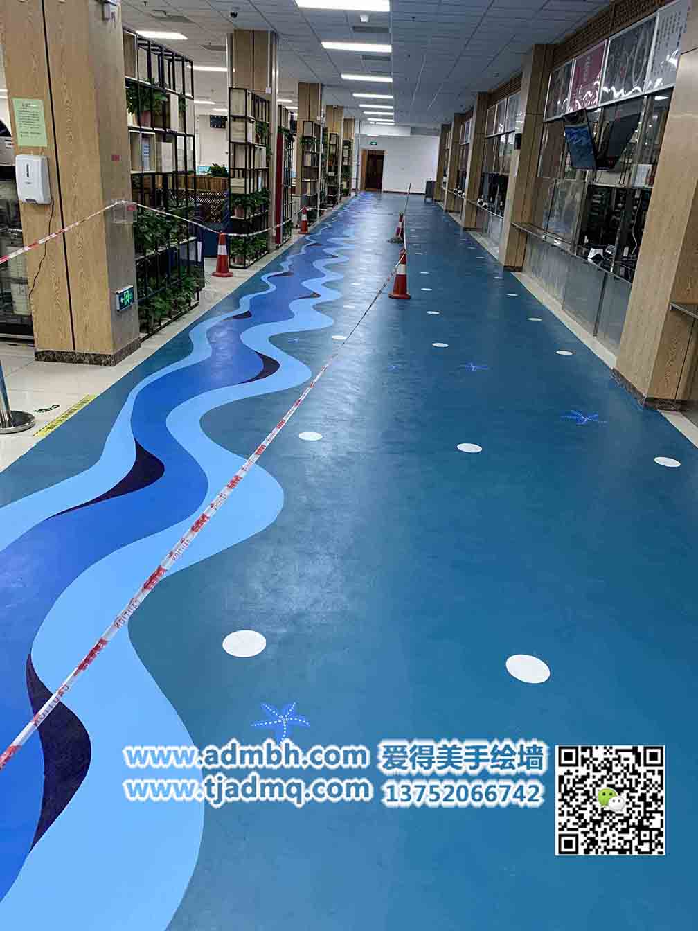 天津墻繪丨為天津中醫藥大學食堂畫的地面彩繪!